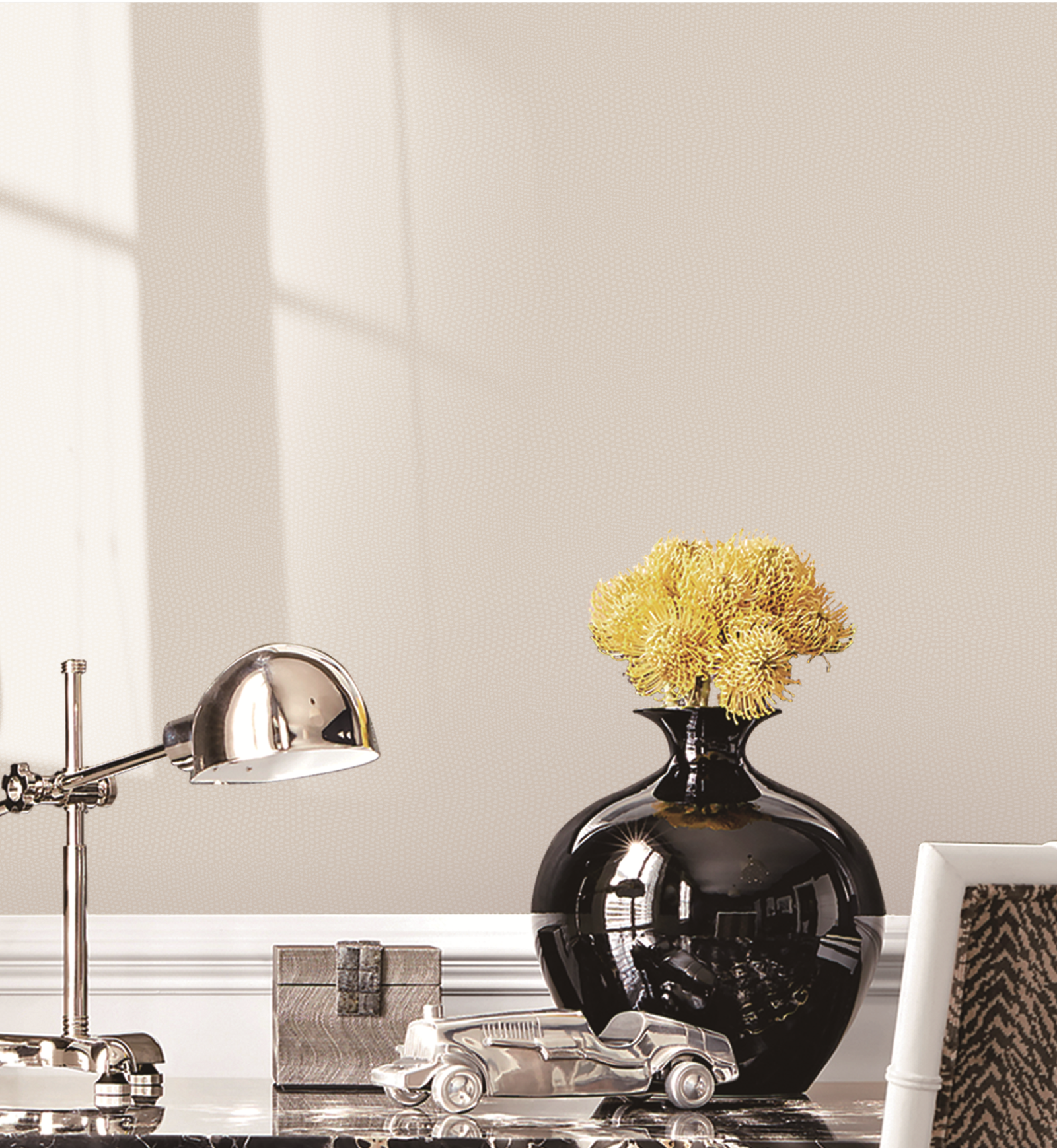 Inspired by the lustrous sheen of natural silk and the gentle vertical fall of summer rain, this design exudes sophistication. The fine vertical strie texture not only adds a touch of understated luxury but also visually elongates the walls, making the ceiling appear higher and the room more spacious.